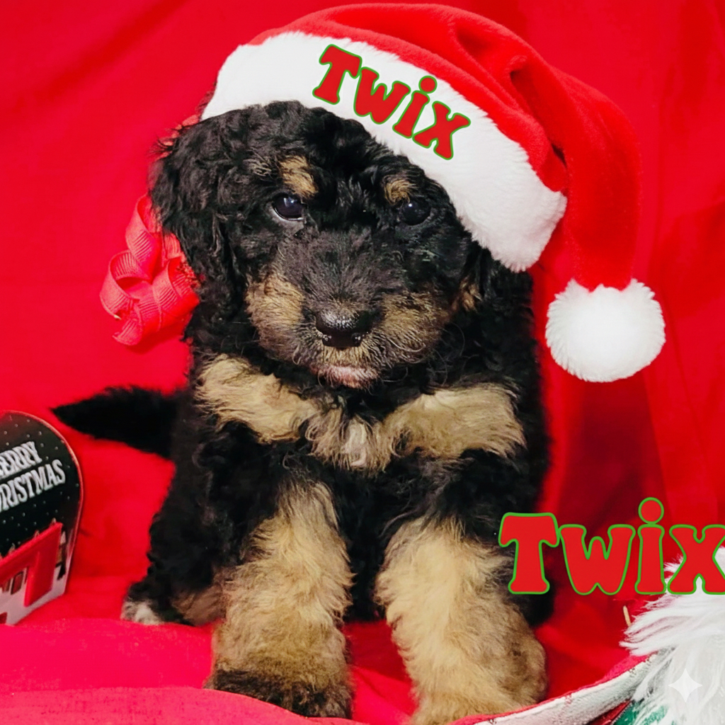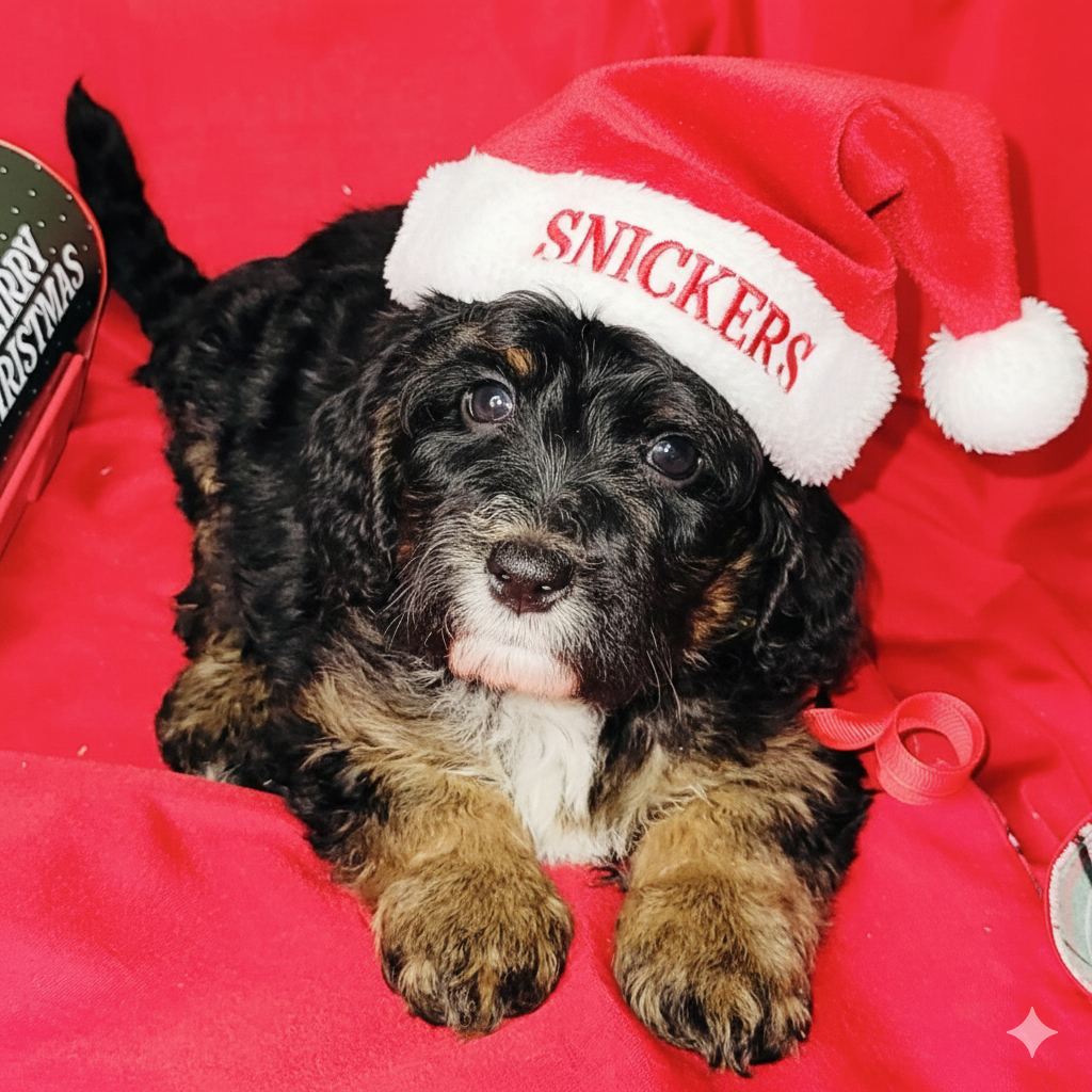 The Bernedoodle is a hybrid dog breed created by crossing a Bernese Mountain Dog and a Poodle. They are known for being intelligent, friendly, and playful, with a low-shedding coat that can be good for allergy sufferers. Bernedoodles come in three sizes (tiny, miniature, and standard) and require regular grooming and consistent training.